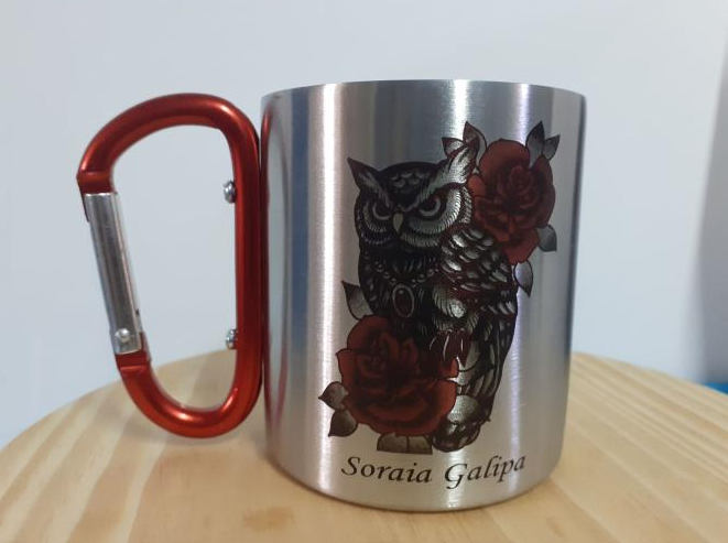 Caneca com mosquetão possibilidades de optar na cor vermelho, verde, azul e preto.